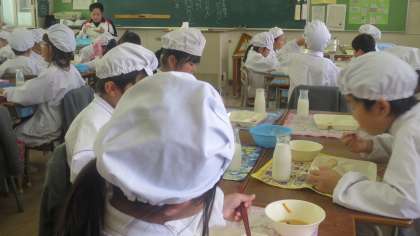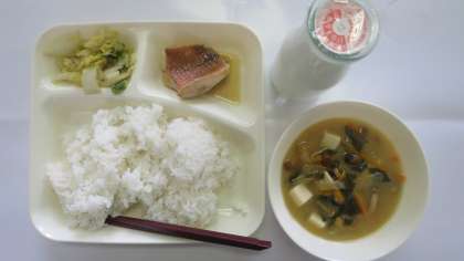 今日の給食のメニューは、赤魚のしょうゆだれかけ、なめこのみそ汁、白菜のごま和え、牛乳、ごはん、でした。赤魚のしょうゆだれかけはうすめの和風しょうゆだれがふっくらとやわらかく焼かれた赤魚の身にかけられて、料亭の一品のようでした。(すみません、ちょっと言い過ぎました)なめこのみそ汁はだしがしっかりととられていて、とっても具だくさんでした。白菜のごま和えはごまの風味が効いたしょうゆベースのたれがはくさいにしみ込んでいておいしかったです。