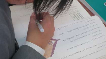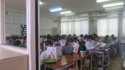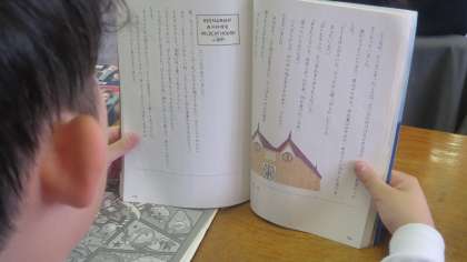 「注文の多い料理店」は宮沢賢治の有名な作品の一つです。5年生の教科書にのっています。現実の世界と幻想の世界を行ったり来たりするところや実は二人の紳士が料理されようとしているところなど、また表現の方法もおもしろおかしくなっていて、子どもたちも楽しく学習できる単元です。子どもたちはしっかりと物語を読み込んで、内容を理解したりおもしろさに気づこうとしたりしていました。えんぴつをもって読めなかった漢字にふりがなをつけている子もいました。