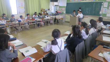 4年生が国語の学習で「話し合い活動」に取り組んでいました。司会の進行にそって、みんなで協力しながら進めていました。しっかりと手をあげて、はきはきと大きな声で発表し、ていねいな言葉づかいを心がけていました。なかなかしっかりとした雰囲気がありましたよ。いい意見が出ると、自然と拍手も起こっていました。