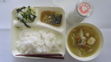 今日の給食のメニューは、さごしのおろしじょうゆかけ、けんちん汁、小松菜と白菜の甘酢和え、牛乳、ごはん、でした。さごしのおろしじょうゆかけはさごしは身はふっくらとしていて皮には焼き目がついていました。上手に焼かれています。おろしじょうゆは大根の苦味が感じられず、ごはんがよくすすみました。けんちん汁はだしの香りが漂い、さといももやわらかかったです。れんこんはていねいにあくが抜かれていて、うすあげにも味がしみていました。小松菜と白菜の甘酢あえは甘酢が効いてさっぱりしていました。