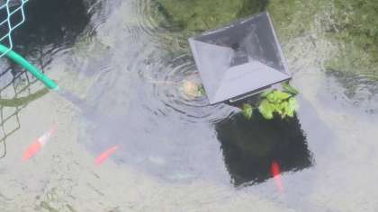 校舎裏には池があって金魚たちがゆうゆうと泳いでいます。