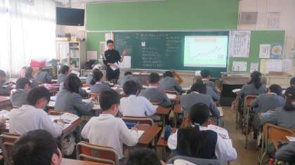 子どもたちは先生と一緒に黒板に映し出されたスライドや映像を利用して確認していました。