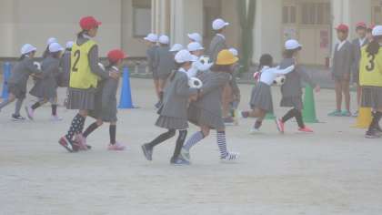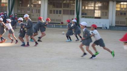 今日の児童集会はボール運びリレーでした。手をつかわずに体ではさんで運びます。2人で息を合わせて…、ちがう学年同士は上級生がリードして…。少し肌寒かったですが、朝の太陽の陽ざしが心地よかったです。みんなで軽く動いて、よい一日のスタートです。