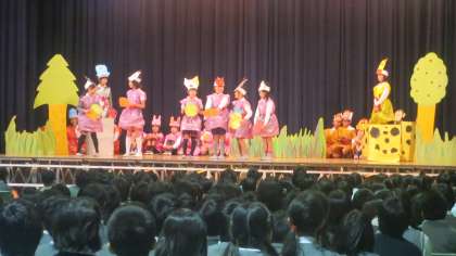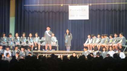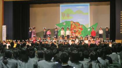今日は学習発表会の児童相互鑑賞が行われました。これまでの練習の成果を他の学年の友だちにも見てもらいました。今日は一日目で、3年生、5年生、1年生の順番で行いました。大きな声で…、そして笑いあり歌あり…、どの学年も学習したことを生かした内容になっていて趣向を凝らしていました。発表時間は約20分です。鑑賞する側も他の学年の発表を心から楽しむことができました。明日は二日目で、4年生、2年生、6年生の順番で行います。