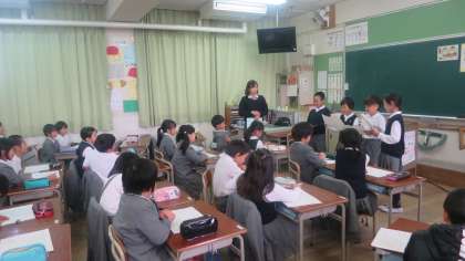 本日5時間目に3年生において道徳の研究授業が行われました。おとしものをした友だちに対して周りの友だちはどう動いていくのかという題材でした。自分ならこんなふうに思う、自分ならこうすると思う…、そのほかにもそれぞれの場面において登場人物の気持ちを考えて発表もしました。みんなよく考えてよく手をあげていました。非常に落ち着いた雰囲気の中での授業であり、子どもたちのがんばりがとても際立っていました。子どもたちはまた一つやさしい気持ちを手に入れたと思います。