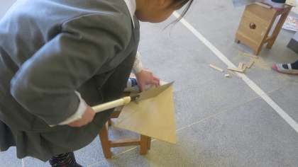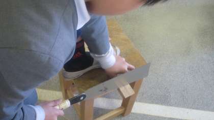 4年生がのこぎりでギコギコ ギコギコ ギコギコ…。