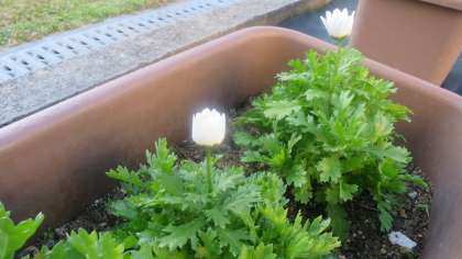 プランターに植えている「ノースポール」という花と「キンギョソウ」という花がちょっとクリスマスツリーみたいに見えたので…、撮ってみました。なんとなくそう見えませんか?