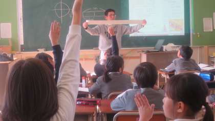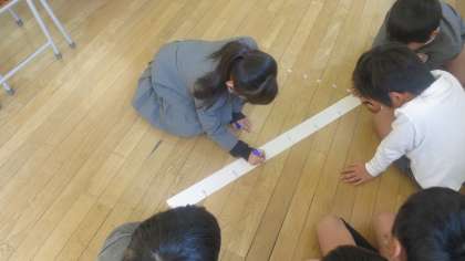 子どもたちは「なるほど」と感心しながら7分の1mの長さを測っていました。