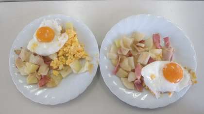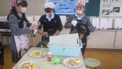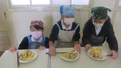今日も昨日に引き続き、6年生のもう一方のクラスが調理実習を行いました。ジャーマンポテトと卵料理です。子どもたちは手際よく作業を進めて、味付け、盛り付けもばっちりです。上手にできました。