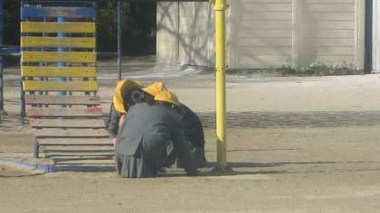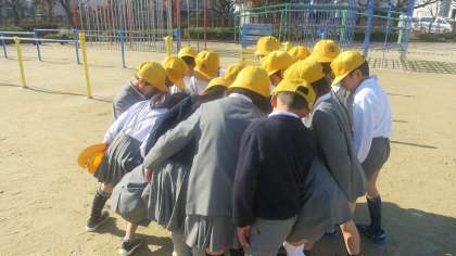その後ろでは1年生の女の子が何やらすなあそび&ひそひそ話です。