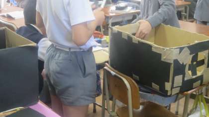 6年生がクリスマス会の準備と練習をしていました。