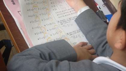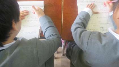 2年生の子どもたちは、冬休みの宿題プリントの答え合わせを先生といっしょにしていました。先生が答えを読み上げていくと、慣れた手つきでちゃっちゃと○をつけていきます。3学期の勉強もしっかりと頑張りましょうね。