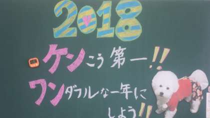 黒板にダジャレが…。
