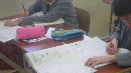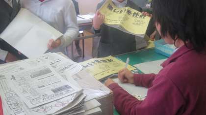 新しい年を迎えて、4年生の子どもたちも笑顔いっぱいでした。冬休みの宿題の○つけをして、先生の前に並んで確認してもらいます。
