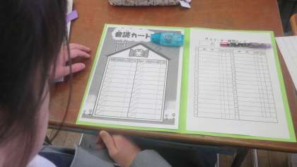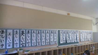 5年生が冬休みの宿題の書き初めをさっそく教室の後ろに掲示していました。「美しい空」です。新年を迎えて、気がひきしまりますね。次に音読カードとリコーダーカードが配られました。台紙に貼って、3学期も継続して頑張っていきます。5年生はいつも朝にリコーダーを吹いているので、みんなものすごく上達しています。ところで、3枚目の写真の男の子は何のガッツポーズだろう?いいことあったかな。