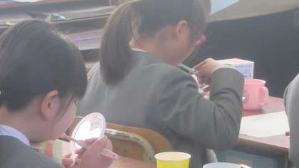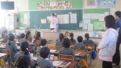 歯科衛生士さんに来ていただいて、2年生の子どもたちに「歯みがき指導」をしていただきました。毎日しっかりとみがけているかチェックします。ピンク色の歯垢チェッカーを歯にぬります。うがいをしてから「うわぁ、めっちゃピンク色や」「どうしよー」「よかった、あまりついていない」…、感想はいろいろです。このあとしっかりと歯科衛生士さんに歯のみがき方を教わって、ていねいにみがく練習をしました。