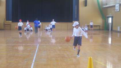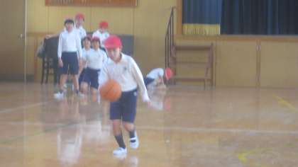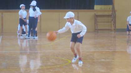 4年生の子どもたちが体育の授業でバスケットボールに慣れる運動をしていました。力強いドリブル、テンポのいいドリブルを目指して、何度もドリブル練習をしていました。中には上手な友だちもいるので、みんなのお手本になっています。友だちの上手なところやがんばっているところを真似するのもいいことです。お互いに伸び合って上達していけるといいですね。