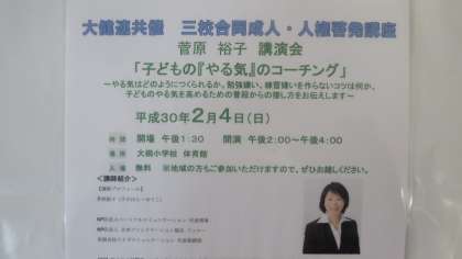 平成30年2月4日(日)に大桐小学校の体育館にて三校合同成人・人権啓発講座が行われます。