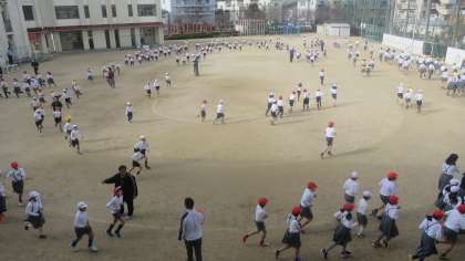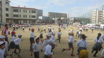 昨日は雨で小休止でしたが、今日は天気も回復して運動場の状態もよくなりました。かけあし再開です。子どもたちは元気に走り出しました。やっぱり体を動かすと気持ちがいいですね。自然と子どもたちにも笑顔がこぼれます。