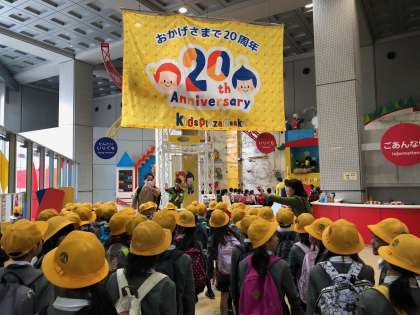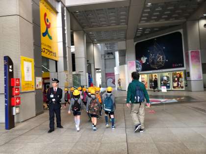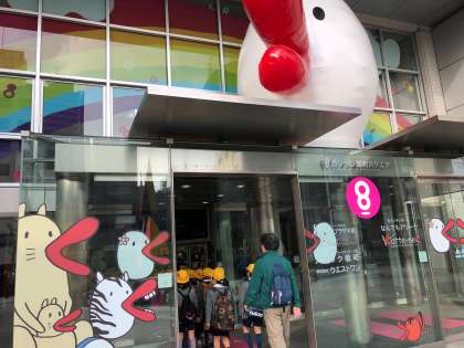 2年生がキッズプラザに着きました。入り口で仕組みのある展示に子どもたちは目を奪われました。