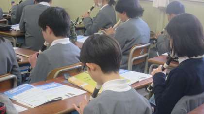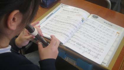 6年生の教室から心地よいリコーダーの音色が聞こえてきました。