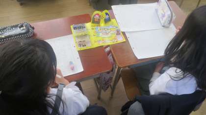 2年生が先週に行った社会見学「キッズプラザ」について、わかったことや気づいたこと、楽しかったことやおもしろかったことなどについて作文にまとめていました。もらってきた資料を開いて、各コーナーや体験したことを思い出していました。書きながら「○○が楽しかったよ」「△△にびっくりしたで」などと話してくれました。楽しかったみたいですね。
