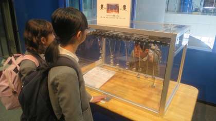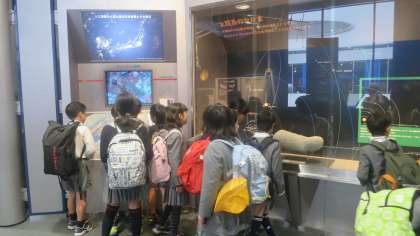 4年生が社会見学で大阪市立科学館に行ってきました。到着すると、先生から見学の仕方やマナーについて説明を受けます。展示物にさわったり確かめたり観察したりできると聞いて、子どもたちは早くもソワソワしていました。さっそくもの珍しいコーナーに走り寄ってのぞき込んでいました。不思議な動きをするものには目を凝らして見入っていました。子どもたちはとても興味関心を引き出されたようでした。