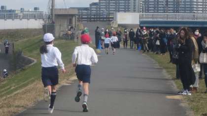 子どもたちは保護者の方々が大勢待っているゴールへと向かって走っていきます。今年の耐寒ミニマラソンも大盛況の中終わりました。子どもたちはまた一歩たくましくなったのではないかと思います。子どもたちは満足感や達成感を味わうことができました。また反対に来年に向けて、もっとできたのにと反省や向上心をかき立てられた子もいるかもしれませんね。かけあし週間は終わりますが、今後も体力の向上と健康の保持増進に努めていきたいと思います。保護者の方々、子どもたちへの大きな声援どうもありがとうございました。