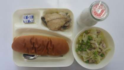今日の給食のメニューは、アジのレモンマリネ、スープ煮、固形チーズ、牛乳、パン、でした。あじのレモンマリネは身はやわらかくほどよく衣がついていました。しんなりとしたたまねぎと酸味が効いたレモン汁があじの身にからんでとてもおいしかったです。スープ煮はさっぱりとした薄味のチキンスープに仕上がっていて、豚肉の旨みやキャベツの甘さが引き出されていました。固形チーズは普通でしたがおいしかったです。