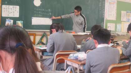 子どもたちはものさしで辺の長さを測ったり分度器で角度を測ったり…。