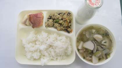 今日の給食のメニューは、赤魚のレモンじょうゆかけ、うすくず汁、高野豆腐のいり煮、牛乳、ごはん、でした。赤魚のレモンじょうゆかけは赤魚は身がプリプリで骨もほとんどなくてほぐしやすく食べやすかったです。薄めの和風だしで煮られていてレモンの酸味がピリッと効いていました。うすくず汁はしいたけの香りが漂い、とろみがついているのでいつまでも温かく食べることができました。高野どうふのいり煮は具だくさんでごはんにかけてもおいしかったです。
