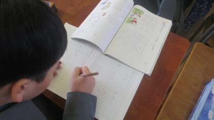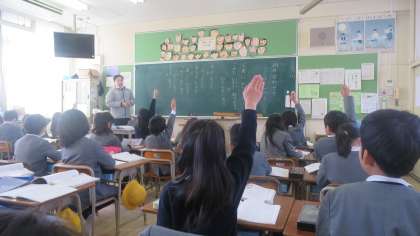 先生が2つの言葉を子どもたちに提示し、どうなるかなと尋ねると、子どもたちはさっと手をあげて答えていました。また組み合わせた言葉を使った文作りにも挑戦していました。