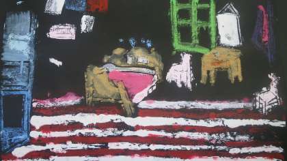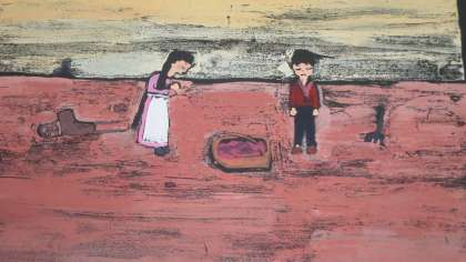 5年生が取り組んでいる版画(多色刷り)がまた何枚かでき上がっていたので紹介しますね。これまたなかなかいい雰囲気が出ているでしょ。