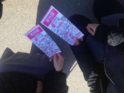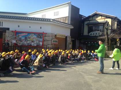 無事到着しました。あたたかくて過ごしやすそうです。みんな元気です。パンフレットをもらって場所の確認をしました。いろいろなコーナーがあります。おばけやしきもあるみたいで、子どもたちのテンションも上がってきました。