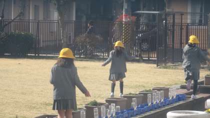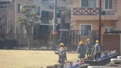ほんの少しですが寒さが和らぐ瞬間が時々出てきましたね。子どもたちにもそれがわかるようです。ポカポカ陽気にさそわれて芝生広場にも子どもたちが出てきました。