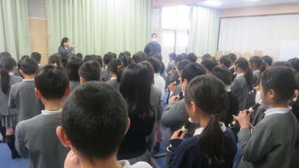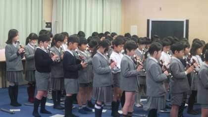 多目的室の前を通ると、中からリコーダーの音色が聞こえてきました。3年生の子どもたちです。3日(土)に行われる「卒業生を送る会」の練習をしていました。大きな声でお祝いのことばや感謝のことばを言ったり、みんなで協力してリコーダーを演奏したりするようです。お兄さんお姉さん、きっと喜んでくれると思いますよ。
