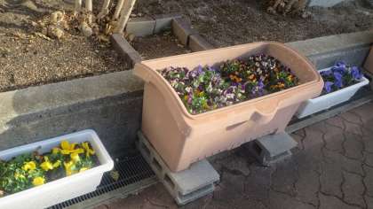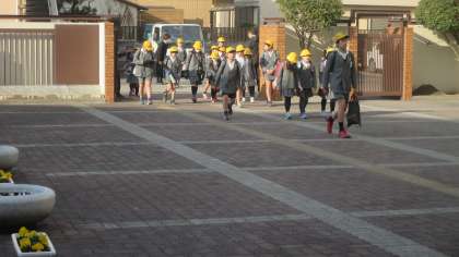 昨日は強風が吹いていましたが、今日はさわやかな朝を迎えています。本校正門前広場の花だんやプランターにはたくさんの草花が季節に合わせて植えられています。子どもたちが気持ちよく登校できるように管理作業員さんが日々手入れを行っています。花に興味がある子も多く、きれいな花を見つけると寄っていく子も見られます。大道南小学校のような開放的な明るい正門は他の学校にはなかなか見られないと思います。
