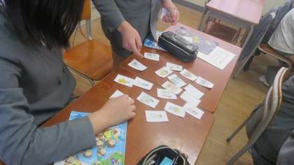 いろいろな職業について英語で答えていきます。最後には今日学習した英単語を使って英語カルタをして楽しみました。