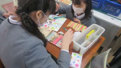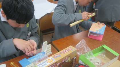6年生が卒業記念制作で取り組んでいるテープカッターが少しずつ出来上がりはじめてきました。なかなか上手です。早く終わった子が進んで手伝ってあげるようすも見られました。いい記念になりそうです。