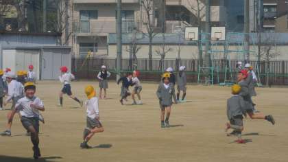 暖かい陽射しの中、子どもたちは元気いっぱいに走り回っています。