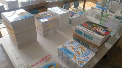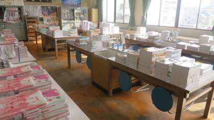 始業式の日に子どもたちに配る教科書が届いています。子どもたちもこの新品の教科書を受け取ったら、早く新しい学習をしたいという気持ちがわいてくると思います。(…のはずです(笑))始業式は4月9日(月)です。