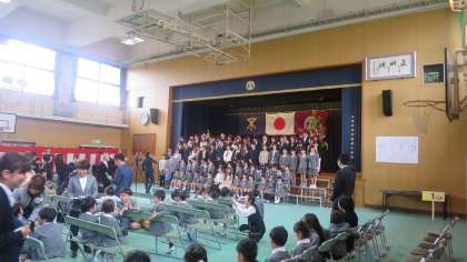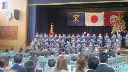 2年生の子どもたちがお祝いの発表をしてくれました。大きな声でからだ全体をつかって、元気もりもりの発表でした。一年生の子どもたちも2年生のお兄さんお姉さんの発表に見入っていました。大人の方々からも大きな拍手をもらってとてもうれしそうでした。一年たつといろんなことができるようになります。一年生の子どもたちもこれからの成長が楽しみですね。
