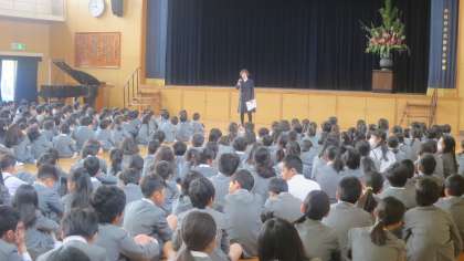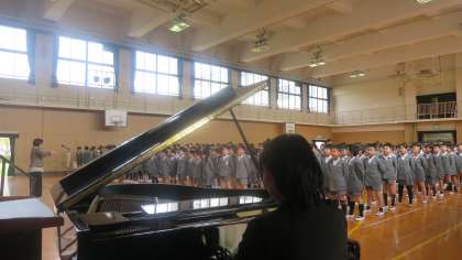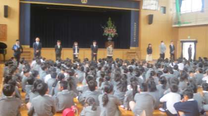 新しいお友だち、新しい教職員を迎えて、始業式が行われました。校長先生からは、校歌にもある「明るい心」「素直な心」「豊かな心」を大切に育てながら、あいさつがしっかりとできる子になりましょう。そして安全に気をつけましょう。新しい学年をしっかりと頑張りましょう。…というお話がありました。