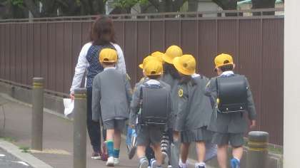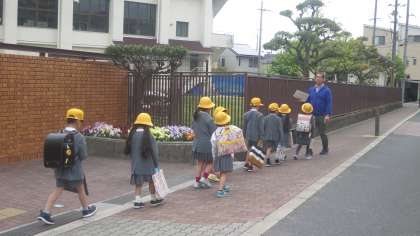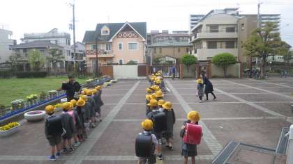 1年生はしばらくの間、お家の近いお友だちと一緒に帰ることになります。担任の先生が「はい、みどりグループはこっちですよ」「きいろグループはこっちだよ」と声をかけると、1年生の子どもたちはぴょこぴょこっとその列に並びます。各グループの担当の先生と一緒になかよく帰っていきました。小学校一日目はどうだったかな?楽しかったかな?