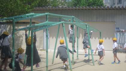 休み時間になると遊具のある場所は低学年の子どもたちでいっぱいになります。