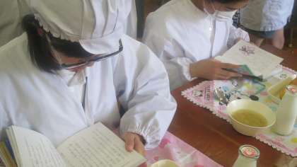 6年生は先生の指導がなくても自分たちでてきぱきと給食の準備をすることができます。準備ができるまで読書をしながら待っている子もいました。さすがですね。