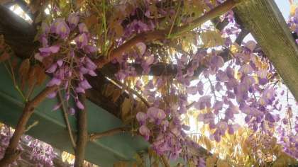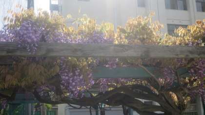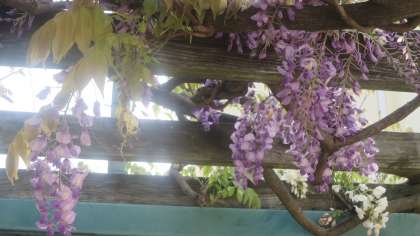 先日も紹介しましたが、本校の藤(フジ)の花が見頃を迎えています。淡い紫色がとてもきれいです。小さな小さな藤棚ですが、その下に入るととても幻想的な雰囲気になります。