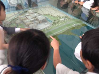 子どもたちは施設の方の説明をしっかりと聞いています。