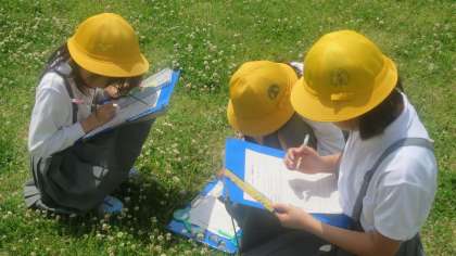 3年生が理科の授業で「かんさつ」をしていました。草花をしっかりと観察します。花や葉のつくりはどうなっているのかな?、においはあるのかな?かたちはどんなかたちかな?種類によってちがうのかな?…、気づいたことは何だろう?、発見したことはあるかな?…、いろんなことに注目しながら観察をしていました。プリントには観察したものをスケッチしたり文章で書いたりします。たくさん書けたかな。