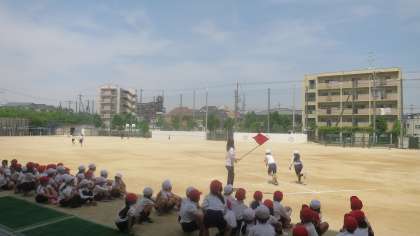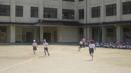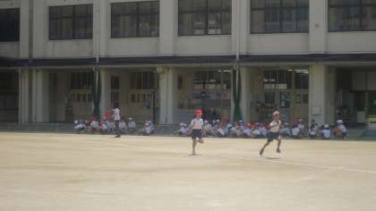 3年生が50m走の記録をはかっていました。3年生にもなるとしっかりとうでをふって全力で走れる子が増えてきました。ついつい友だちの応援をしていたんですね。
